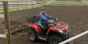 Bild hagarana sladdas till – banan harvas upp så det blir fukt iden. 2024 börja vi sladda hagarna 24 April, så våren kom sent då Blev 2 st 2:a platser …