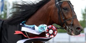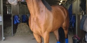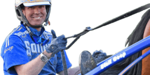 Bild 2 åring som Bronsman äger , kom från Broman, 1:a jobbet på Lökene med Björn i vagn. Varit en varm dag, de utökar träningen på 2 åringarna från idag-( …